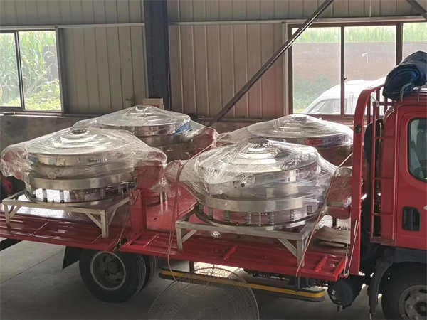 4臺(tái)1200不銹鋼直排篩發(fā)貨, 加裝超聲波系統(tǒng),篩分精度高,產(chǎn)量大, 能耗低,全封閉,無粉塵,特制電機(jī)。