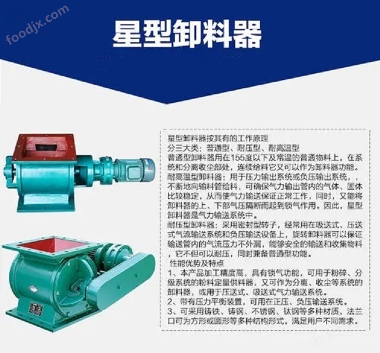 星型卸料器 輸送設(shè)備是除塵設(shè)備排灰、送風(fēng)及其他設(shè)備給料的主要設(shè)備,適用于粉狀物料和顆料狀物料。分類:卸料器主要分為A型方口卸料器,B型圓口卸料器。