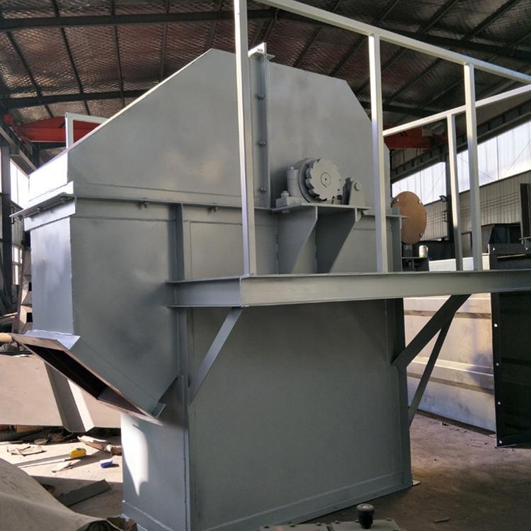 1、上部裝置:安裝有軌道(雙排道),防止鏈條擺動,逆止器,防止料斗回轉,物料阻滿下部機殼,卸料口裝有橡膠板防止回料。