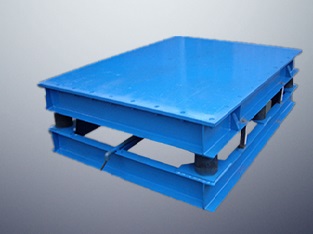 主要由臺底架、振動電機(jī)和彈簧等部件組成,臺面與底架均用鋼板和型鋼焊接而成,振動臺是用振動電機(jī)加一對相同的偏心輪組成。