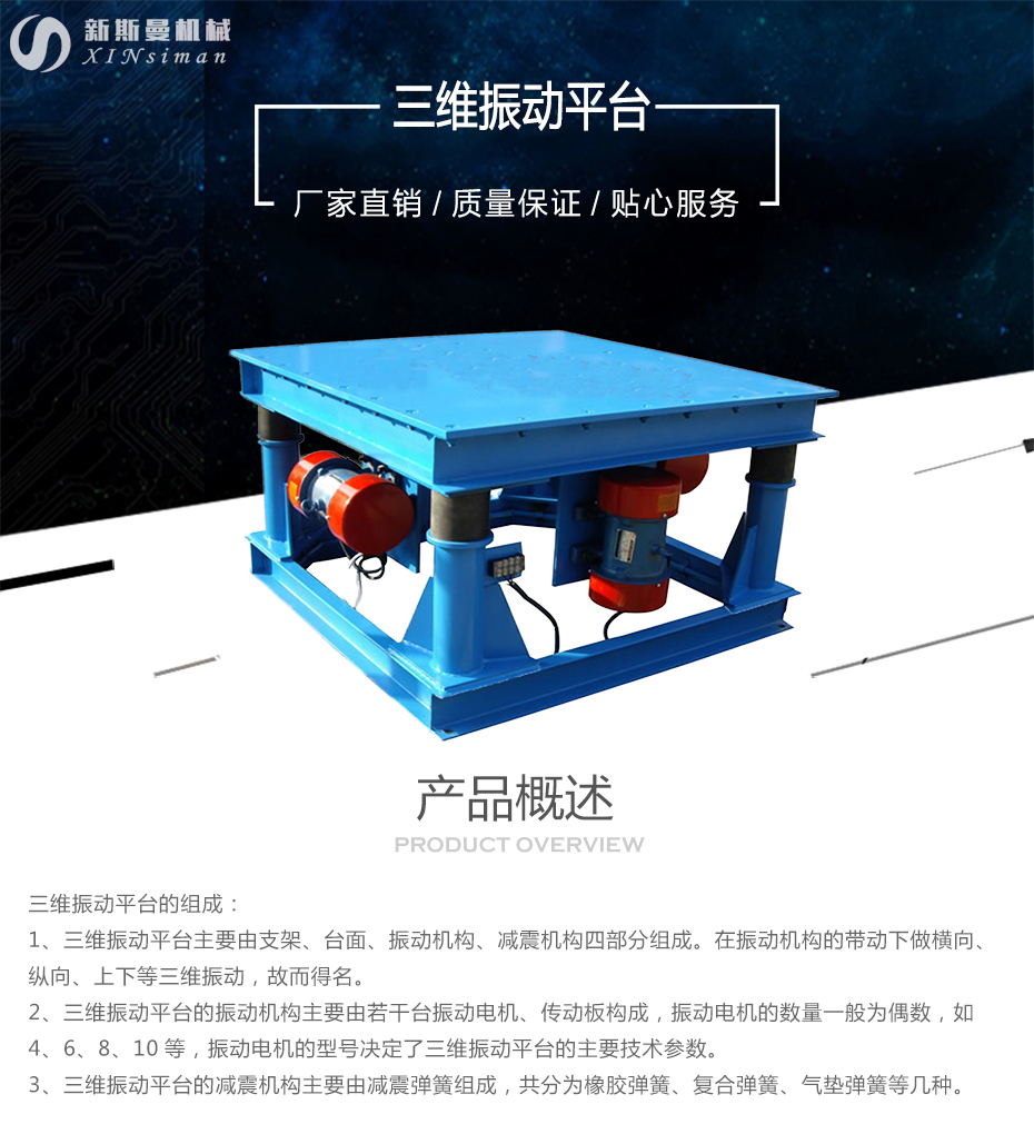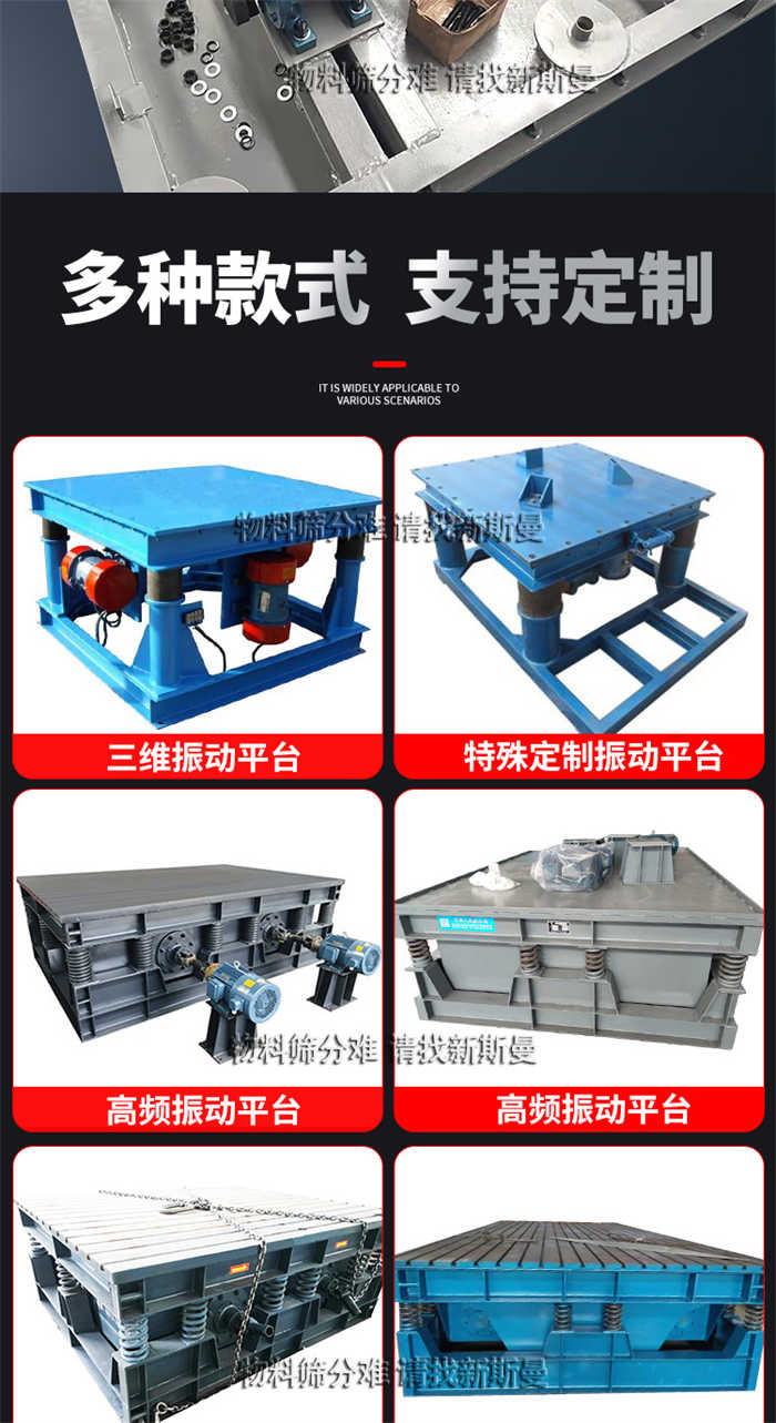 4、振動平臺分為上下振蕩、螺旋振蕩和三維振蕩三種振蕩方法。