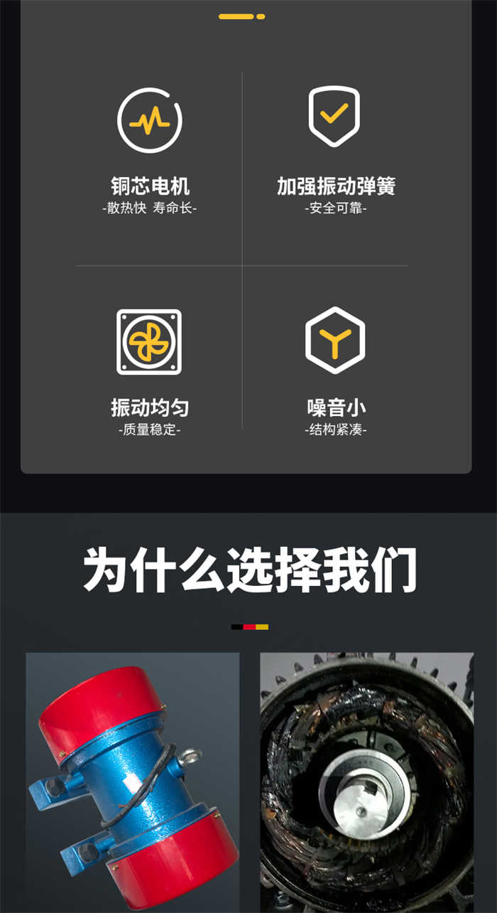 2、振蕩電機(jī)為激振源,噪聲低、耗電小、保護(hù)簡略。