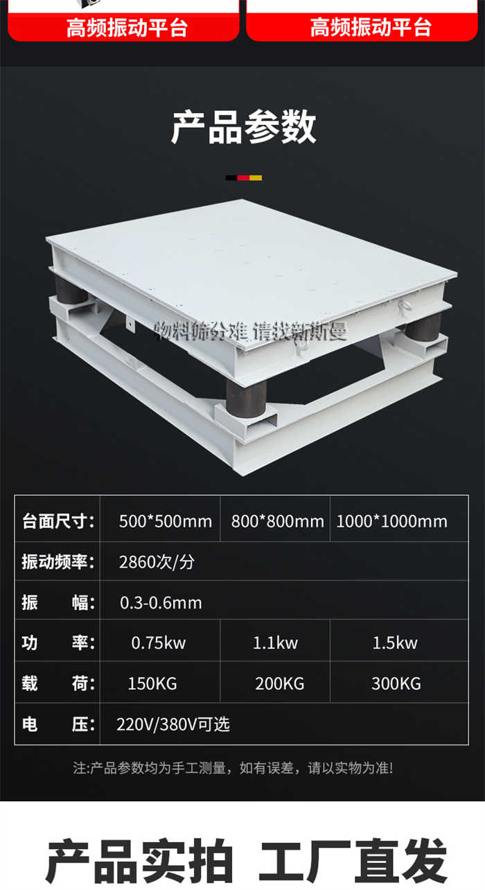 振動平臺又名振實(shí)臺,主要用于物料的振實(shí),削減物料內(nèi)的空氣和縫隙,通常和料倉配套運(yùn)用。