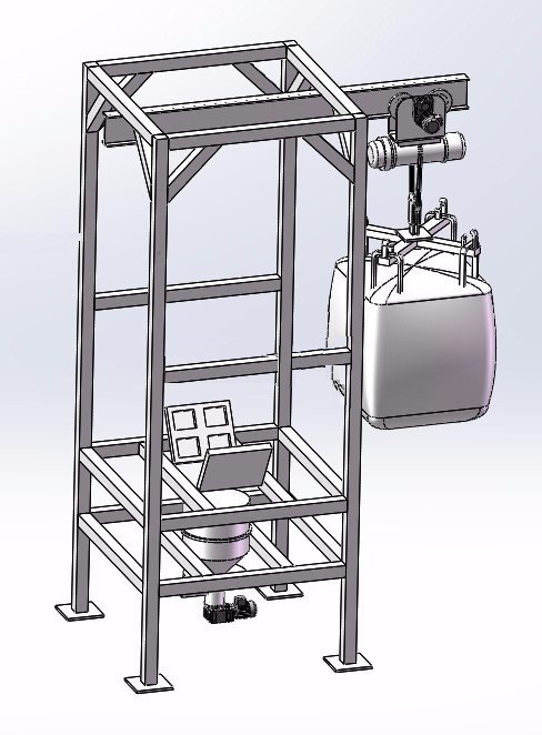 當(dāng)小袋物料需要解袋并倒入下一道工序時,只需人工直接拆包后投入到該系統(tǒng),投料時所產(chǎn)生的物料粉塵由集塵風(fēng)機(jī)進(jìn)行收集。